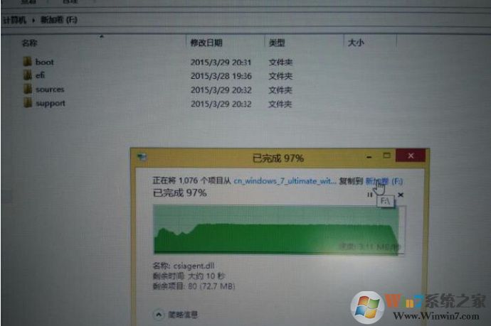 1、先把硬盤分一下區(qū),客戶一千的硬盤,c分了100,我又分了幾個(gè)區(qū),把win7的安裝版解壓復(fù)制到最后一盤,以后可以刪掉的。把Win7裝在d盤