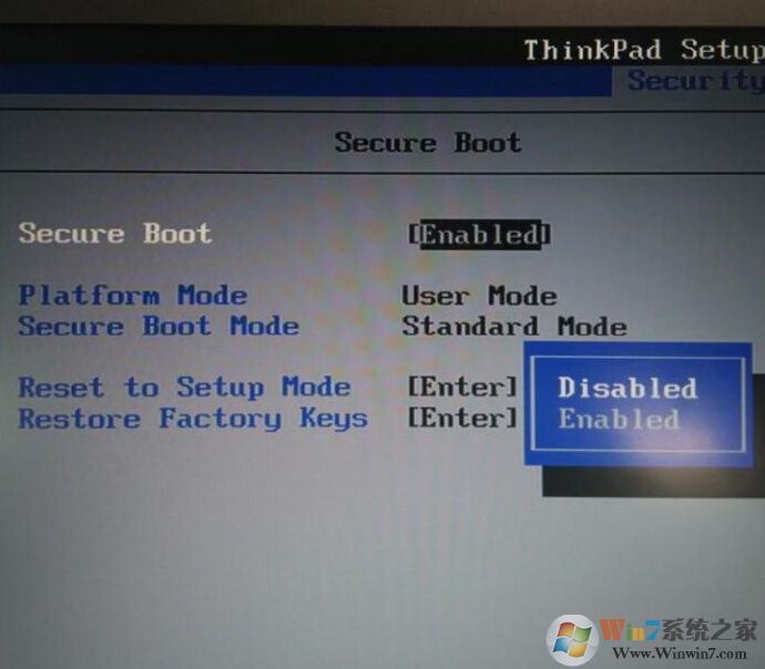 8、找到Secure Boor選項(xiàng),設(shè)置為關(guān)閉Disabled ;(這項(xiàng)是關(guān)閉安全驅(qū)動(dòng),win7需要)