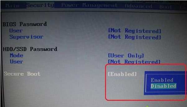 1、在開機啟動時按F2進入BIOS,在Security下,把Secure Boot改成Disabled;