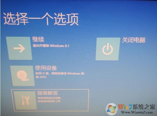 二、選擇一個(gè)選項(xiàng),這里用向下方向鍵選擇“疑難解答”,如下圖: