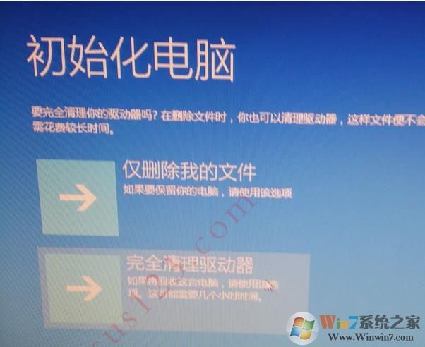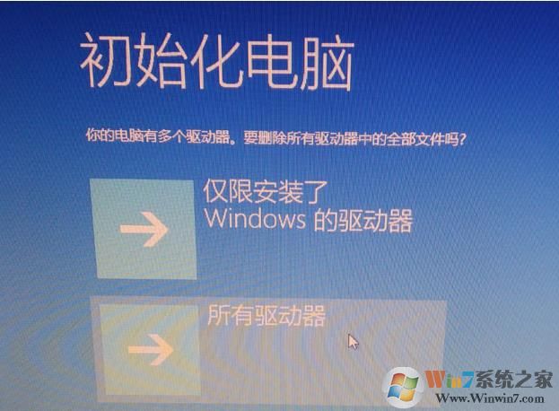 五、初始化電腦,選擇所有驅(qū)動(dòng)器或僅C盤,根據(jù)實(shí)際情況選擇,沒什么資料,就可以所有驅(qū)動(dòng)器;