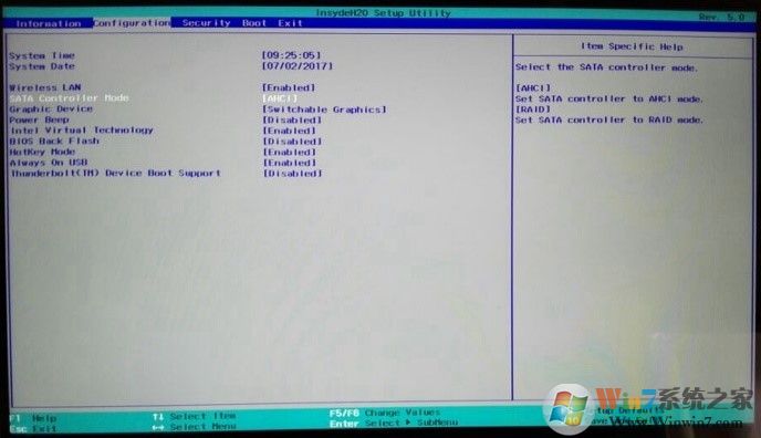 3、先進(jìn)入BIOS進(jìn)行設(shè)置,需要更改硬盤為AHCI模式(AHCI模式是一種新的硬盤算法,這種硬盤算法能有效的提高硬盤的性能,同時(shí)支持一些特殊的功能)