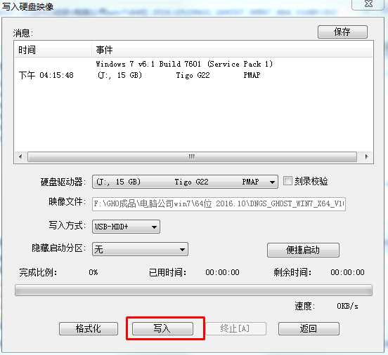 5、出現(xiàn)寫入界面,我們再點擊“寫入”就可以了,確保U盤里沒有重要的資料哦。