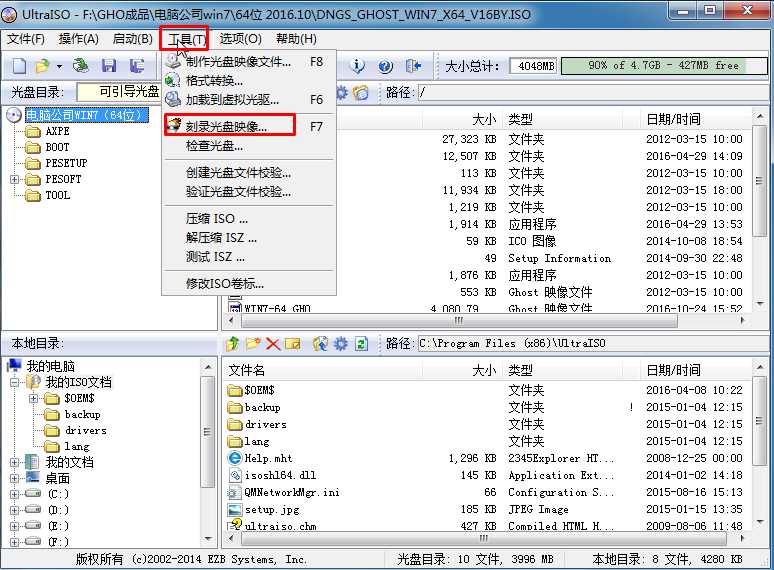 4、點擊【工具】——【刻錄光盤映像】;
