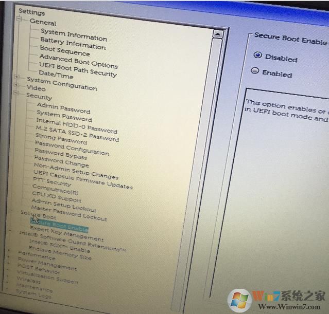 2、然后如圖關閉安全啟動 如下圖(把Secure Boot 設置為 Disabled) 不能操作的話就先退出BIOS再進來