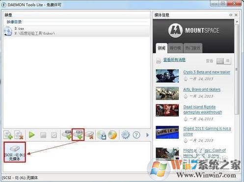 5、首先創(chuàng)建虛擬光驅(qū)。點(diǎn)擊主界面中的“創(chuàng)建SCSI虛擬光驅(qū)”,就會發(fā)現(xiàn)在界面下方出現(xiàn)一個映像光驅(qū)。