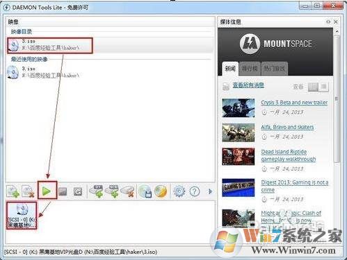 6、選擇映像目錄中的一個映像文件,然后右擊”載入“,就會在主界面的下方創(chuàng)建一個虛擬光驅(qū)盤符。
