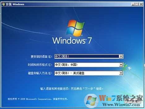 6、分配好磁盤之后Boot Camp會(huì)自動(dòng)制作好用于安裝Win7旗艦版的U盤安裝盤,并重啟屏幕提示 press any key to boot form cd or DVD ,我們就按任意鍵,進(jìn)入到Win7安裝界面,如圖: