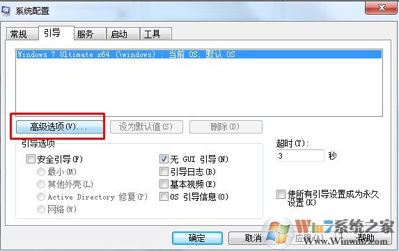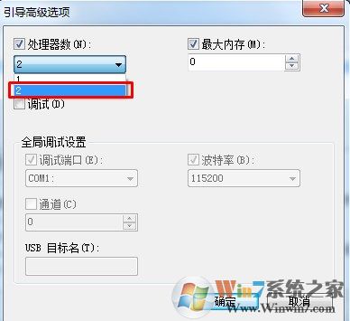 點擊Advanced Options(高級選項)...按鈕,彈出窗口的左上角第一項勾選,Number of Processors,選擇最大數(shù)然后確定返回上一級。