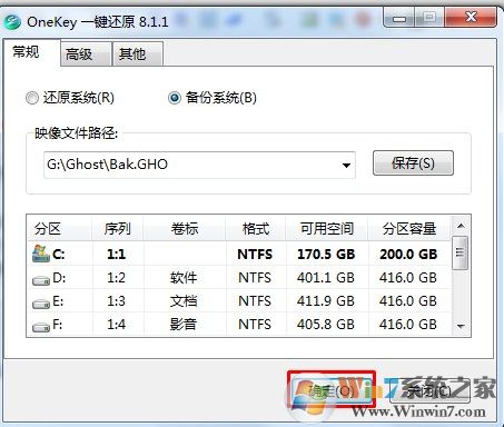 3、點擊確定即可開始備份