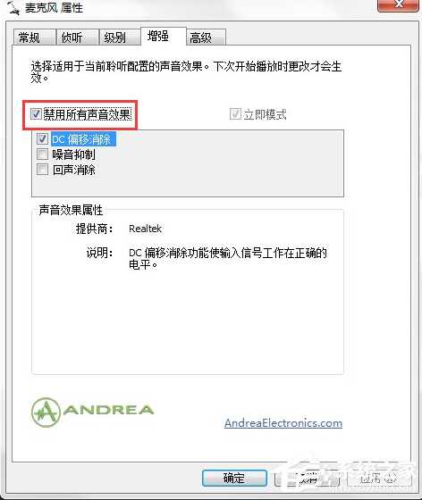 5、在“增強(qiáng)”中,選擇“禁用所有聲音效果”;