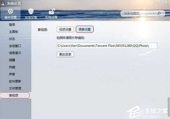 在QQ主界面點(diǎn)擊左下角齒輪狀的“打開系統(tǒng)設(shè)置”圖標(biāo),進(jìn)入QQ “系統(tǒng)設(shè)置”,選擇“音視頻”中的“語音設(shè)置”;