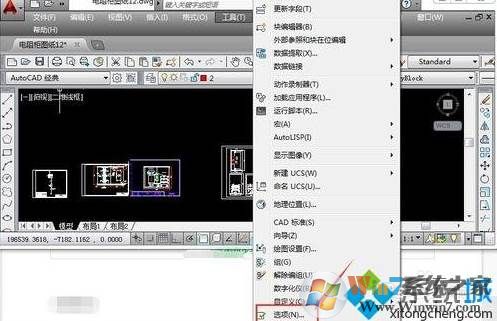 1、在CAD菜單工具中選擇選項(xiàng)的下拉列表;