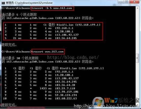 指定跟蹤的躍點(diǎn)數(shù)。以下的命令只顯示5跳,可以看到命令只跟蹤到5跳就結(jié)束了。一般來說,5跳之內(nèi)可能還是本地省內(nèi)鏈路。