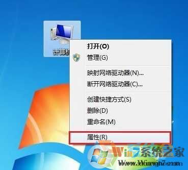 一、首先在筆記本電腦桌面的“計(jì)算機(jī)(我的電腦)”上右鍵鼠標(biāo),然后選擇打開(kāi)“屬性”,如下圖所示。