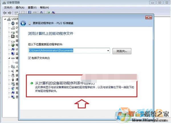 五、之后會(huì)進(jìn)入瀏覽計(jì)算機(jī)上的驅(qū)動(dòng)程序文件選擇界面,這里依舊點(diǎn)擊底部的【從計(jì)算機(jī)的設(shè)備驅(qū)動(dòng)程序列表中選擇】,如下圖所示。