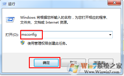1.首先,同時(shí)按下win7系統(tǒng)鍵盤上的win+r快捷鍵或者打開(kāi)開(kāi)始菜單選擇運(yùn)行,打開(kāi)電腦的運(yùn)行窗口,在打開(kāi)的運(yùn)行窗口中輸入msconfig并單擊窗口下方的確定按鈕,或者說(shuō)可以直接單擊回車確定。