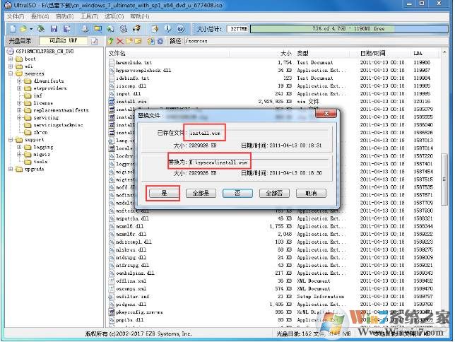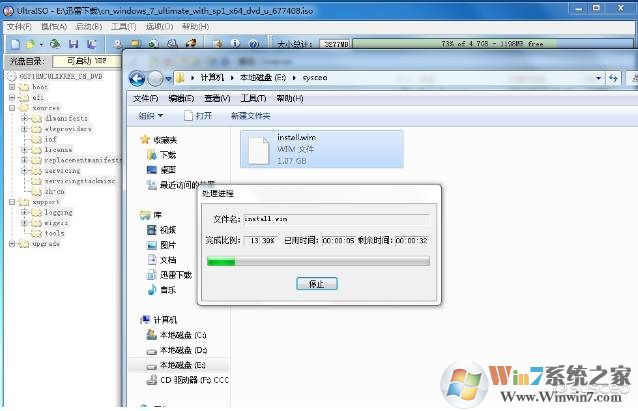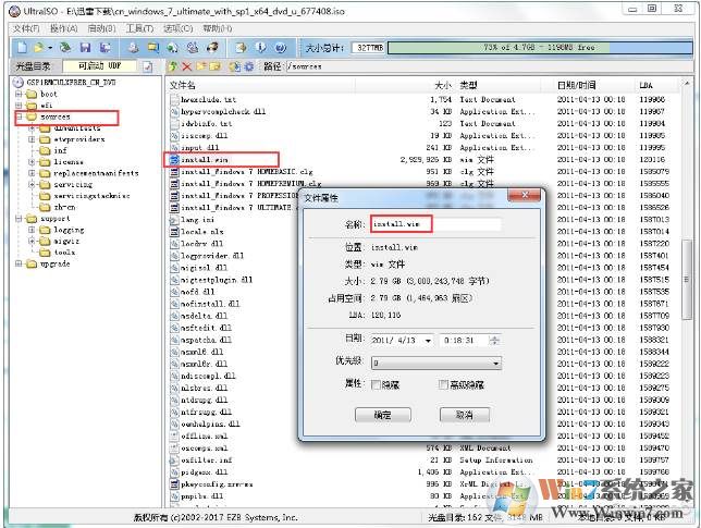 1、首先把系統(tǒng)鏡像文件里面的 install.wim 文件使用 軟碟通UltraISO 導出來 路徑在:X:\sources\install.wim