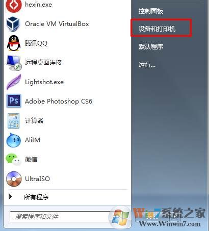 1、點(diǎn)擊開始菜單,然后點(diǎn)【打印機(jī)和設(shè)備】;