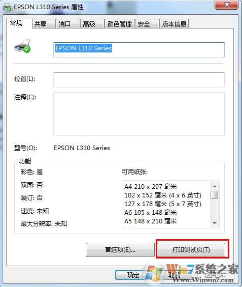 3、接下來,我們?cè)冱c(diǎn)擊打印測(cè)試頁(yè)就可以了。