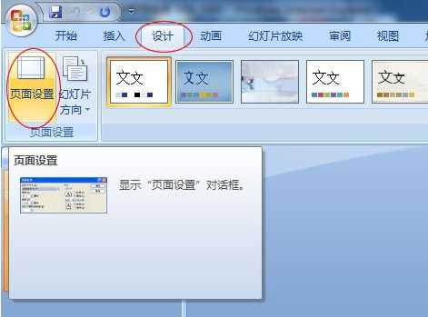 ①單擊進入“設(shè)計”選項卡,點擊“ 頁面設(shè)置”按鈕,如下圖紅色區(qū)域;