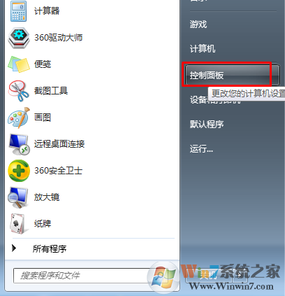 1、點(diǎn)“開始——控制面板”;