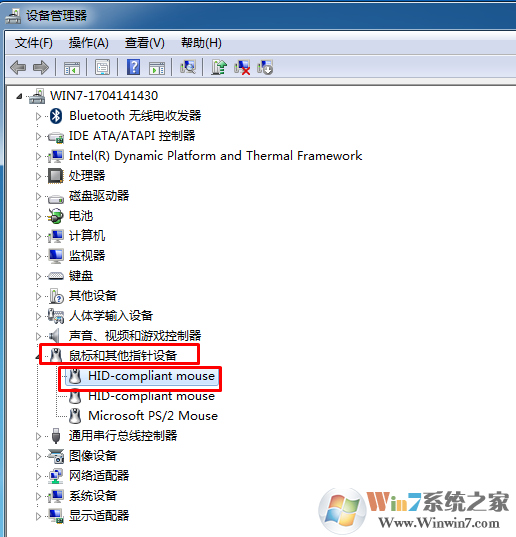 1、打開設(shè)備管理器,找到鼠標(biāo)選項