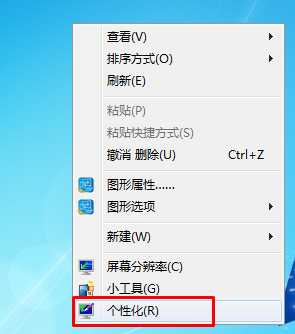 1.在桌面上任意的找到一個(gè)空白處,點(diǎn)擊鼠標(biāo)右鍵,在出現(xiàn)的下滑菜單中,選擇個(gè)性化選項(xiàng)