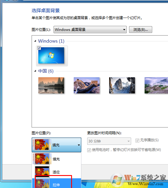 3、進(jìn)入之后,在其中找到自己需要設(shè)置的圖標(biāo)導(dǎo)入,如果這個(gè)時(shí)候出現(xiàn)圖片比例不符合分辨率的情況,周邊就會(huì)出現(xiàn)邊框,這個(gè)時(shí)候,只需要將圖片設(shè)置為拉伸狀態(tài)就可以了。設(shè)置完成之后圖片就會(huì)在桌面背景上全屏顯示了。