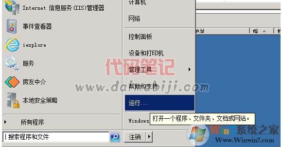 1、首先遠(yuǎn)程桌面登錄服務(wù)器,然后點擊開始—運(yùn)行,或是WIN+R都可以。