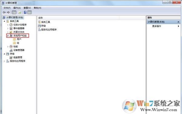 4、打開“計(jì)算機(jī)管理”后,在窗口左側(cè),可以看到有個(gè)“本地用戶和組”,點(diǎn)擊展開它,如下圖所示: