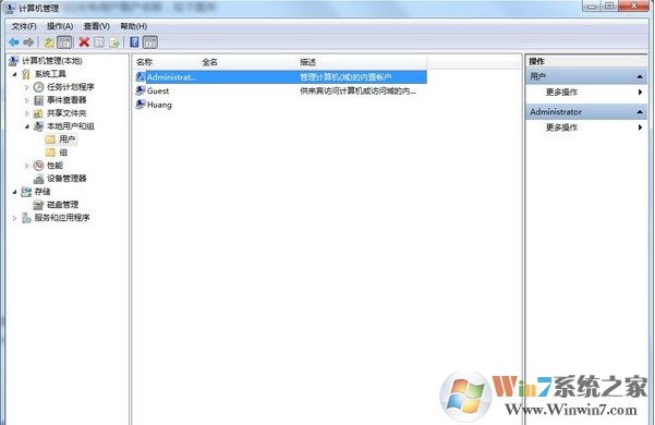 5、在“本地用戶和組”下單擊用戶,在右欄就能看到你計(jì)算機(jī)的所有用戶賬戶名稱,如下圖所示:
