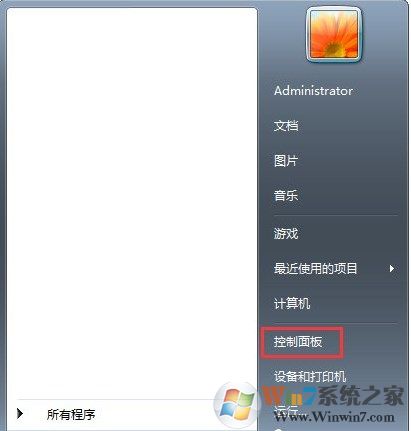 1、單擊開始菜單,打開“控制面板”;