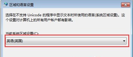 5、單擊“區(qū)域和語言設(shè)置”對(duì)話框中的下拉選項(xiàng);