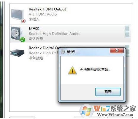 以上就是Win7系統(tǒng)下出現(xiàn)無法播放測試音調(diào) 沒有聲音解決方法的解決方法了,希望對大家有幫助。