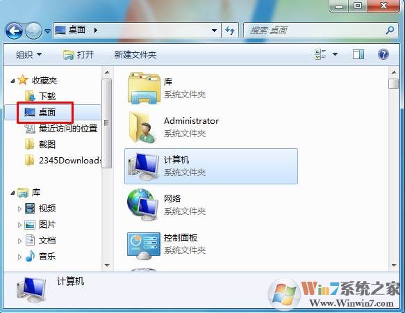 1、打開任意文件夾,計算機啥的都可以,然后選擇左側(cè)的桌面,如下圖