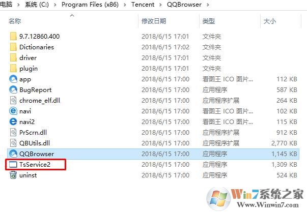 1、通過分析發(fā)現(xiàn)TsQBservice.exe進程是屬于QQ瀏覽器的相關(guān)進程;文件目錄為QQ瀏覽器安裝文件夾