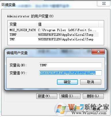 5、雙擊你的修改的變量(TEMP和TMP 臨時文件夾)然后設(shè)置一個你自定義的文件夾路徑;