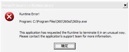 一般出現(xiàn)runtime error都會有一個文件名提示,我們可以根據(jù)該文件判斷是哪個軟件程序出現(xiàn)問題。