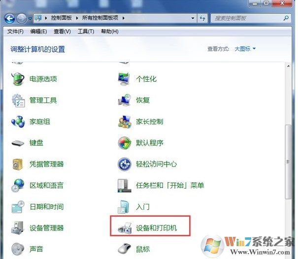 3、在“控制面板”,打開“設(shè)備和打印機”
