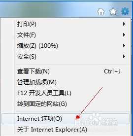 1、打開IE瀏覽器點(diǎn)擊設(shè)置,找到Internet選項(xiàng);