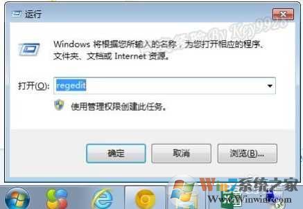 1、在WIN7下按下WIN+R然后打開(kāi)“運(yùn)行”,并輸入“Regedit”: