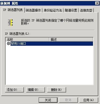 到這里我們就按圖文步驟完成了對(duì)21端口的關(guān)閉操作,不過(guò)需要注意的是21端口為FTP端口,關(guān)閉后FTP就不能用了,這個(gè)需要大家了解到,其它端口的關(guān)閉方法類(lèi)似,大家也可以在防火墻中設(shè)置。