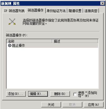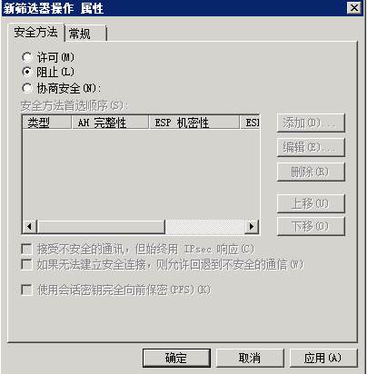 11、在“新篩選器操作屬性”的“安全方法”選項(xiàng)卡中,選擇“阻止”,然后點(diǎn)擊 “確定”。接著點(diǎn)擊“阻止操作”左邊的復(fù)選框,然后點(diǎn)擊“確定”。(在常規(guī)中名稱 設(shè)置為阻止操作)