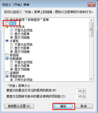 3、把幫助,這個(gè)選項(xiàng)取消勾選,然后點(diǎn)確定;