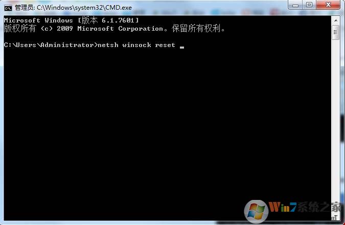 2、輸入:netsh winsock reset 回車;Win7 cncxm.com
