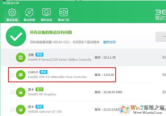 2、然后再開(kāi)機(jī),使用驅(qū)動(dòng)精靈、驅(qū)動(dòng)大師等軟件把USB3.0驅(qū)動(dòng)安裝一下