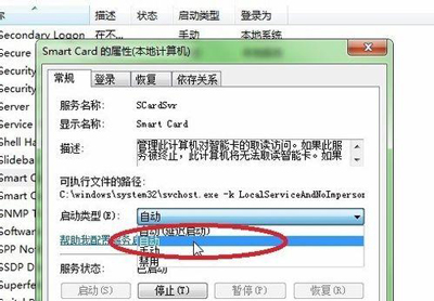 4、我們先要做的是確認(rèn)系統(tǒng)的”Smart Card”服務(wù)是否有啟動,右鍵“我的電腦”,選擇“管理”,再點擊進(jìn)入到“服務(wù)和應(yīng)用程序”下面的“服務(wù)”項,找到Smart Card服務(wù)項,若已啟動就行,若沒啟動請將其設(shè)置為啟動,并且類型為“自動”;