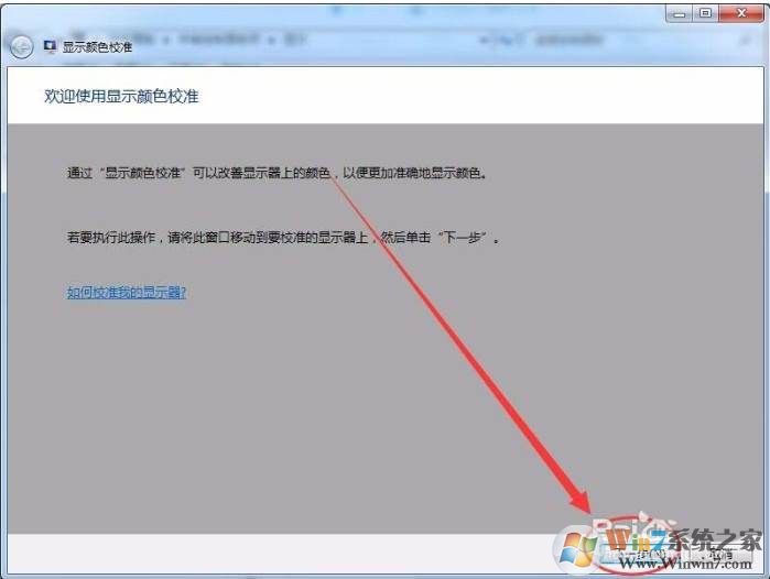 4、出現(xiàn)顯示顏色校準(zhǔn)歡迎界面后,單擊下一步按鈕。