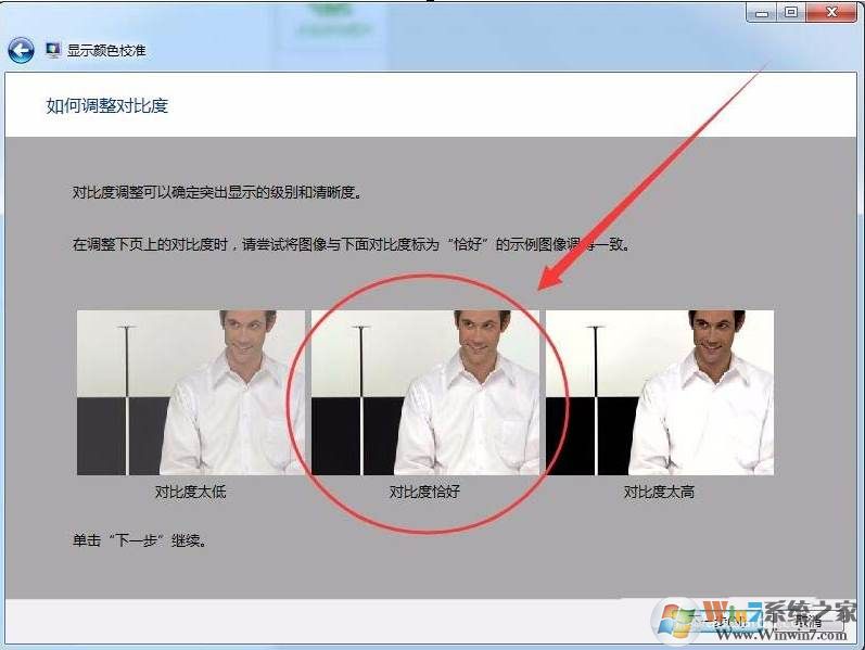 11、根據(jù)提示的中間圖片,在調(diào)整對(duì)比度窗口中,將對(duì)比度設(shè)置好。